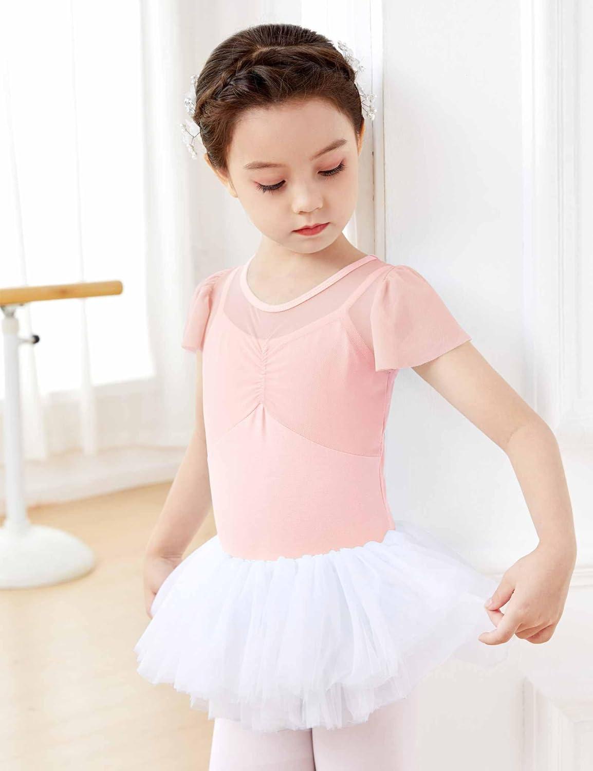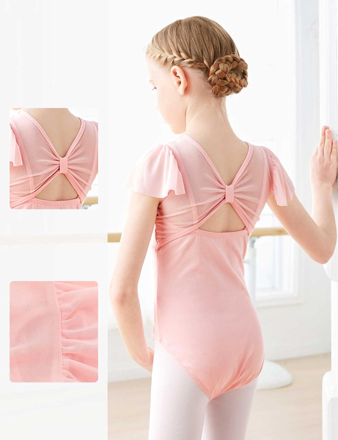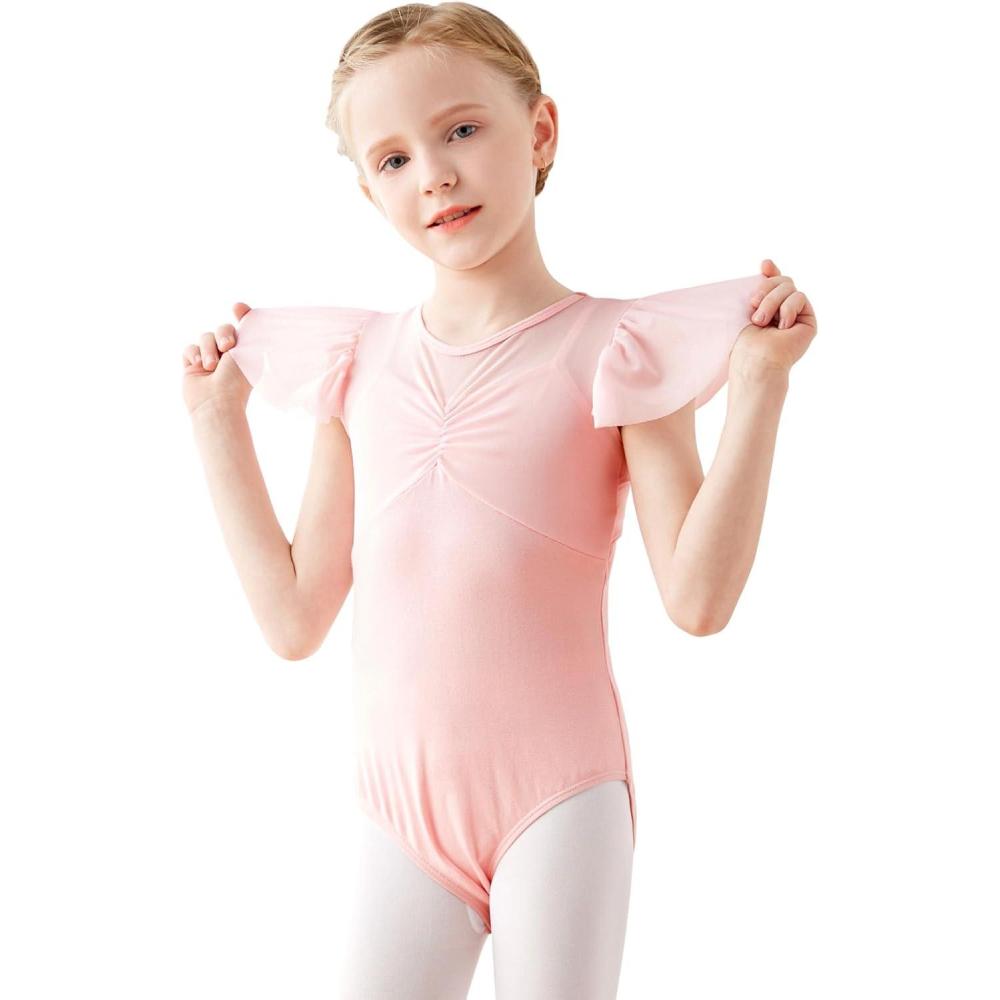 Daydance Fluttler Sleeve Ballet Dance Leotards for Toddler/Girls/Kids/Big Kids/Big Girls(Ballet Pink-flutter Sleeve)