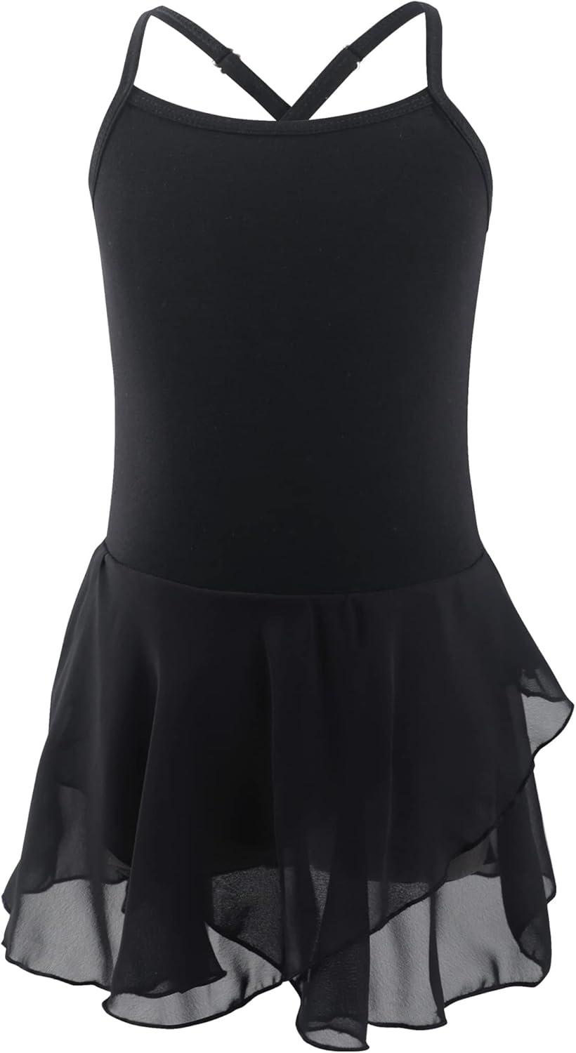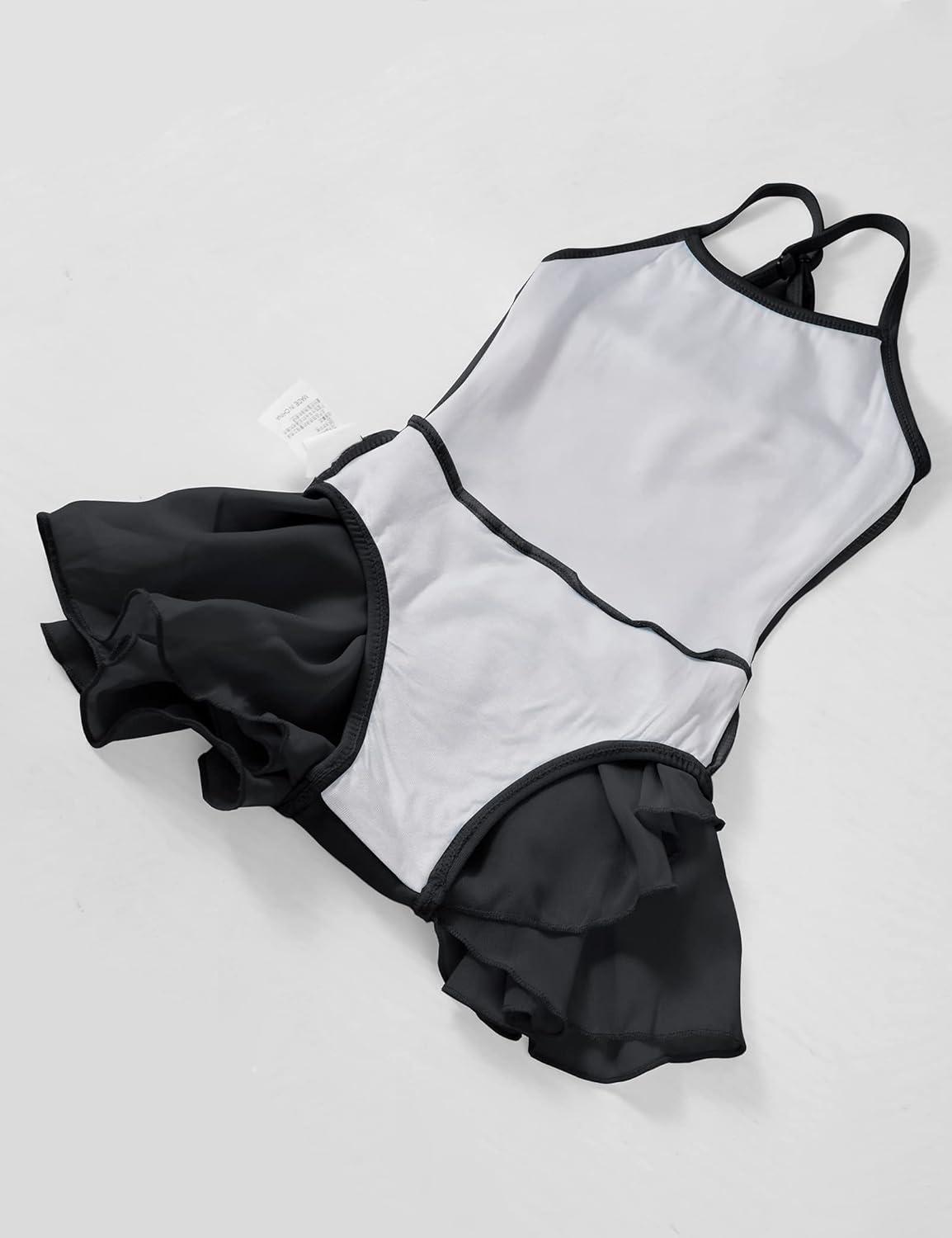 Daydance Lined Spandex Vest Girls Leotards for Ballet, Dance, Gymnastics, Swim(Black-lining-with Skirt)