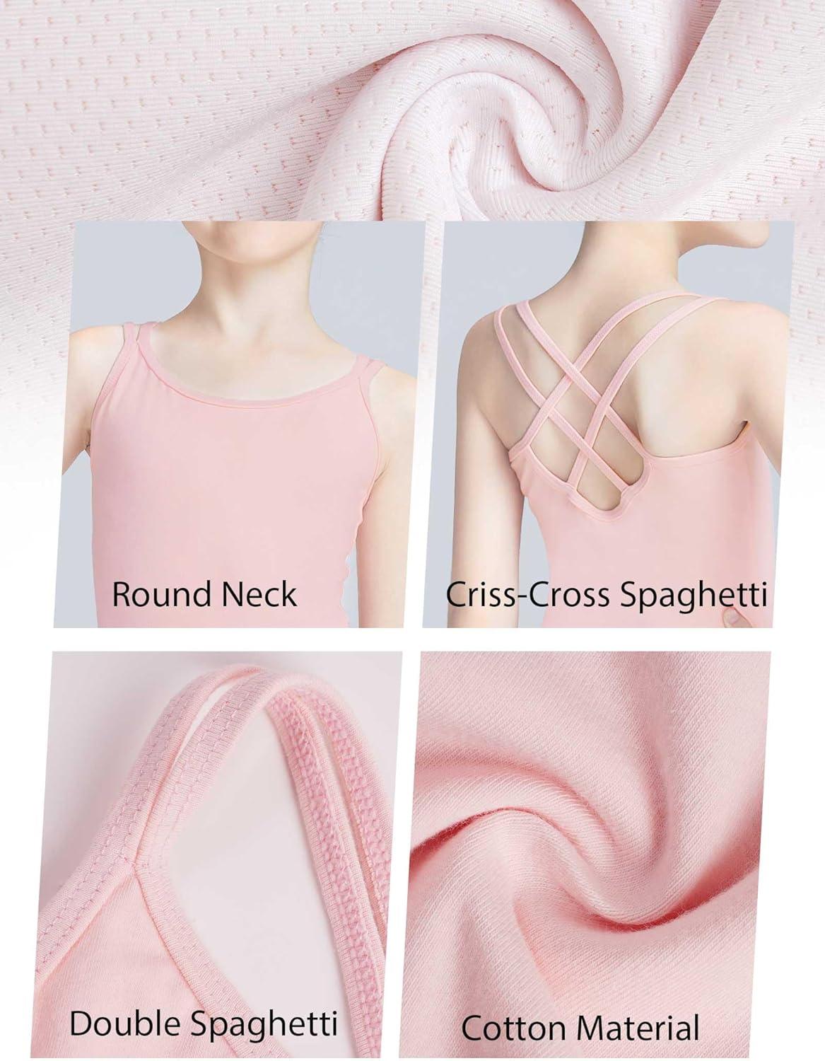 Daydance Toddler Kids Girls Camisole Leotards for Ballet, Double Breast Dance Bodysuit(Ballet Pink-lining-camisole Leotard)
